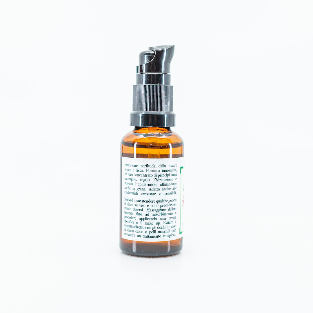 Modo d'uso: stendere qualche goccia di siero su viso e collo precedentemente detersi. Massaggiare delicatamente fino ad assorbimento e procedere applicando una crema specifica o il make up. Evitare il contatto diretto con gli occhi. Procedere con l’applicazione della crema consigliata. In caso di clima caldo o pelli maschili può costituire un trattamento completo